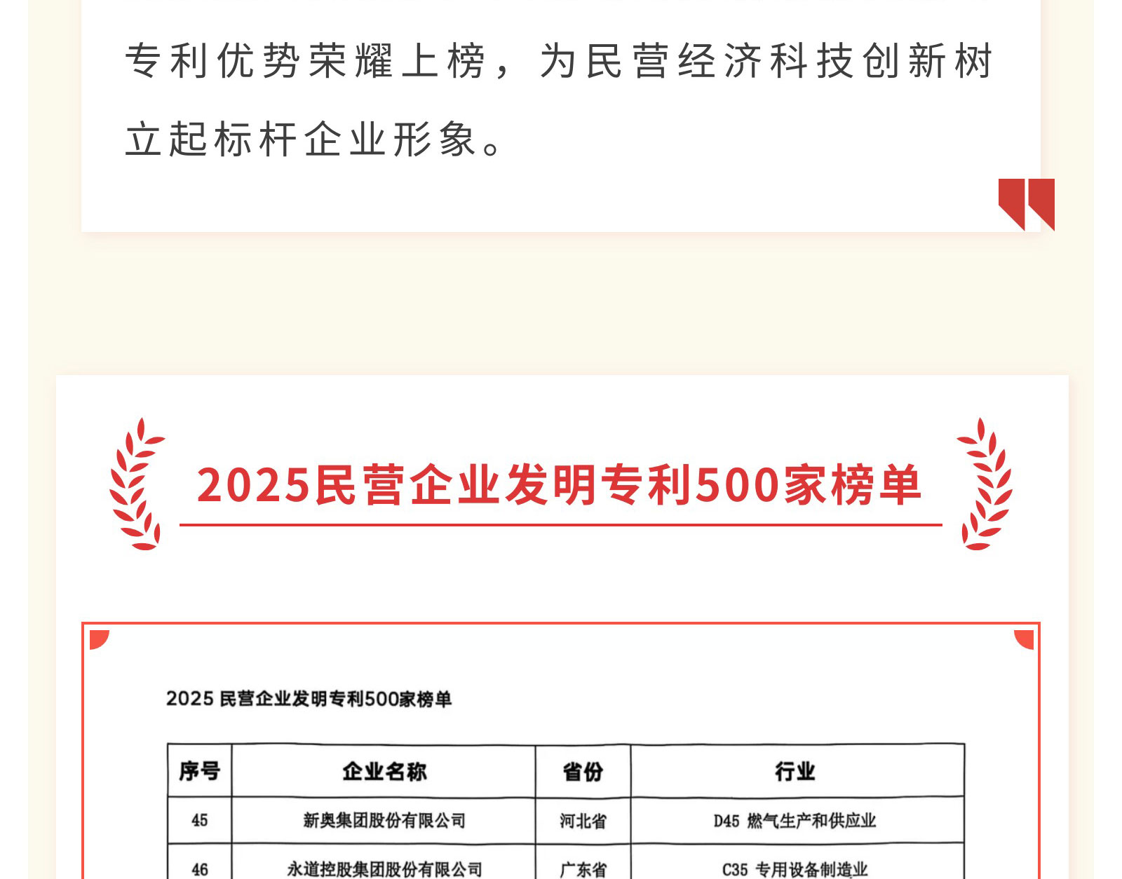 喜讯丨润通集团荣登“2025民营企业发明专利500家”榜单